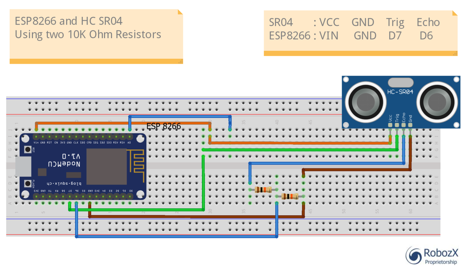 | HC-SR04 Pin | ESP8266 Pin | Purpose |